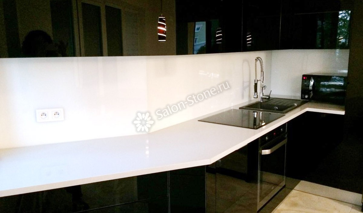 Стеновая панель для большой кухни белая
