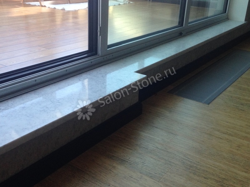 Длинный подоконник светлого оттенка из кварцевого агломерата Cambria