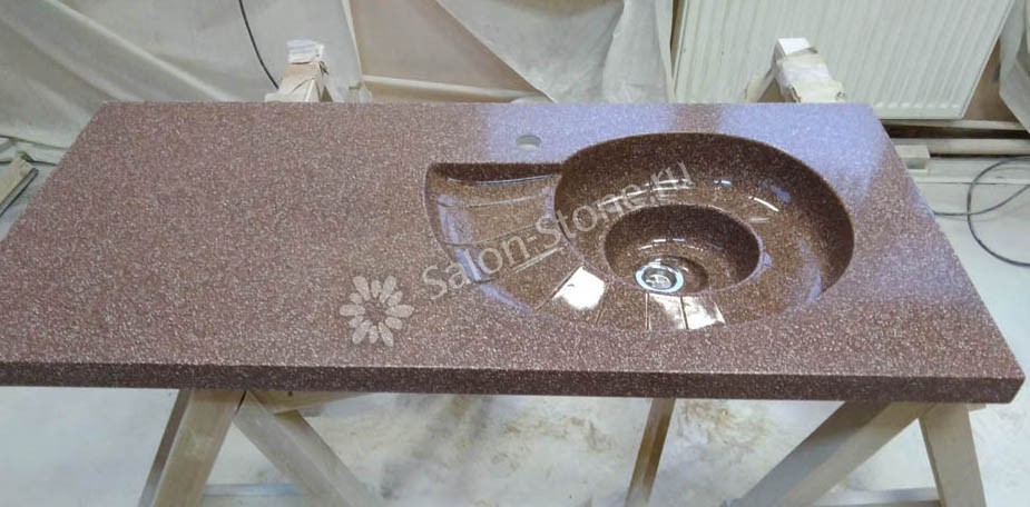 Столешница коричневого оттенка с белыми вкраплениями из камня